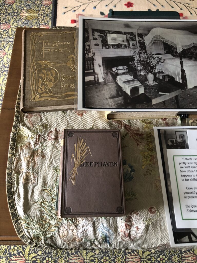 Kendra Gaylord: The room feels bright and airy with a light floral wallpaper and some of the same colonial revival touches as Mary’s room above the entry door is an old sign reading Dr. Jewett. It originally would have hung outside Sarah’s father’s office, but it has an added connection since Teddy also became a doctor. But there is also some alternate history where that sign would have been for Sarah as well. As a child, Sarah followed her father on doctor’s visits, and she had briefly wanted to become a doctor herself. But even though she never became a doctor, she memorialized the job and her father in her book, A Country Doctor.