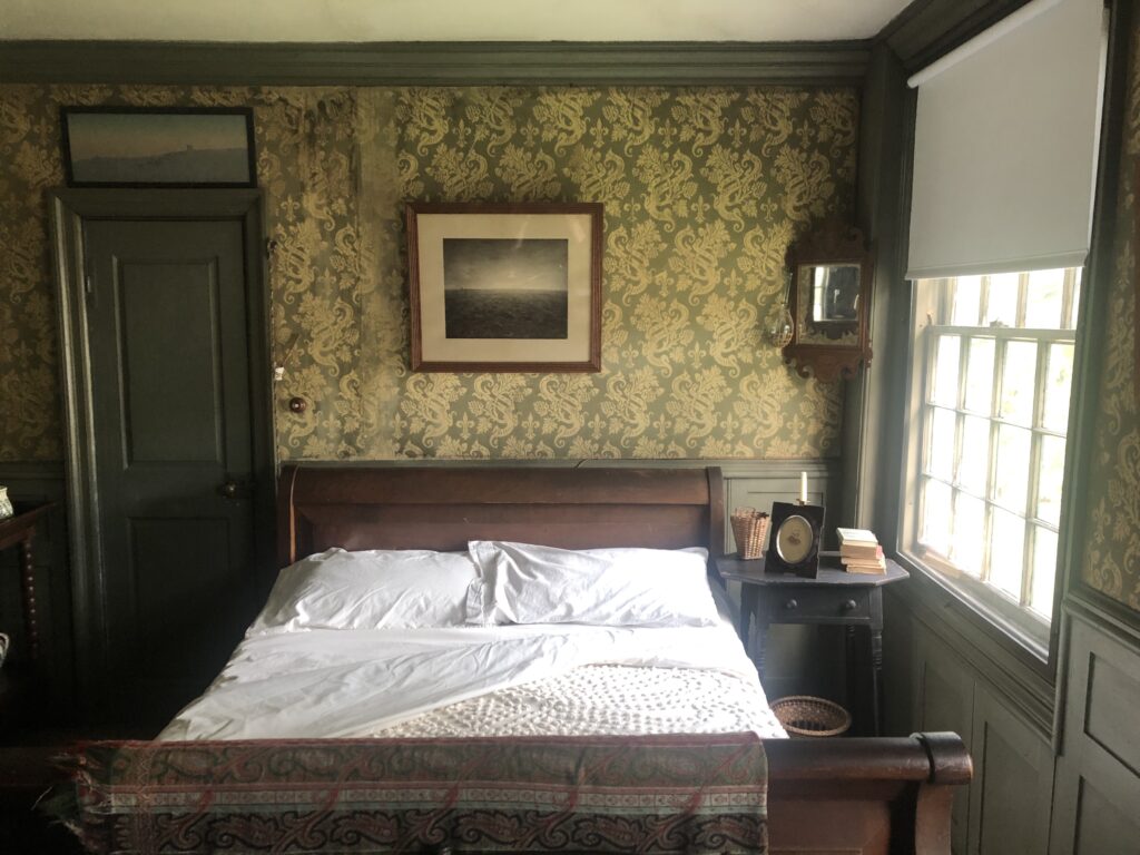 Although Sarah never became a doctor, she immortalized their role in small communities like this one in Maine. But the thing I love about this book, which you can see in this one conversation, is Sarah found her play. Her fears and the early criticism of her work not having a plot, they’re gone in this novel. She still captures the places, the people, the scenery, but she also found a protagonist who isn’t afraid to do what she wants, no matter the tension and drama it create. We’re now going to head to the other side of the hallway, past Sarah’s desk, and to the guest room in the front.